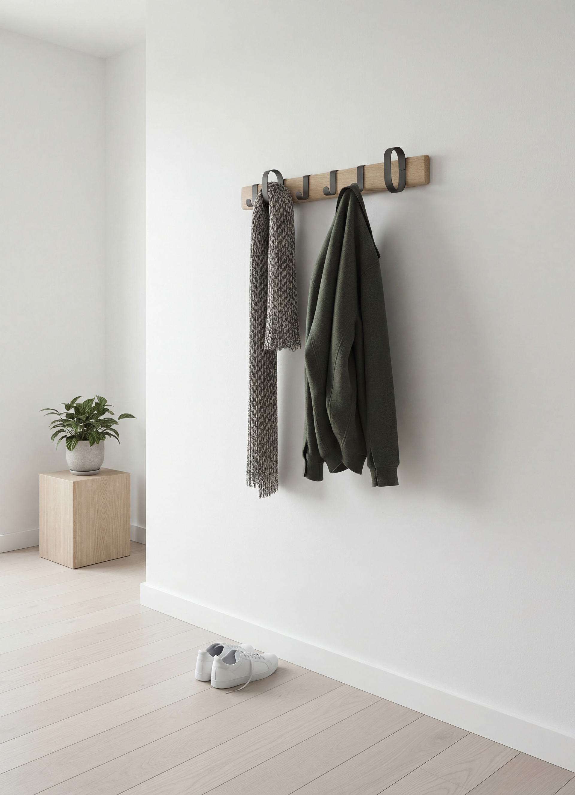 The Fluke coat racks are versatile and customisable in the sense that the hooks and scarf rings can be arranged as you wish. The Fluke coat racks are made of FSC® certified white oak and powder coated metal.