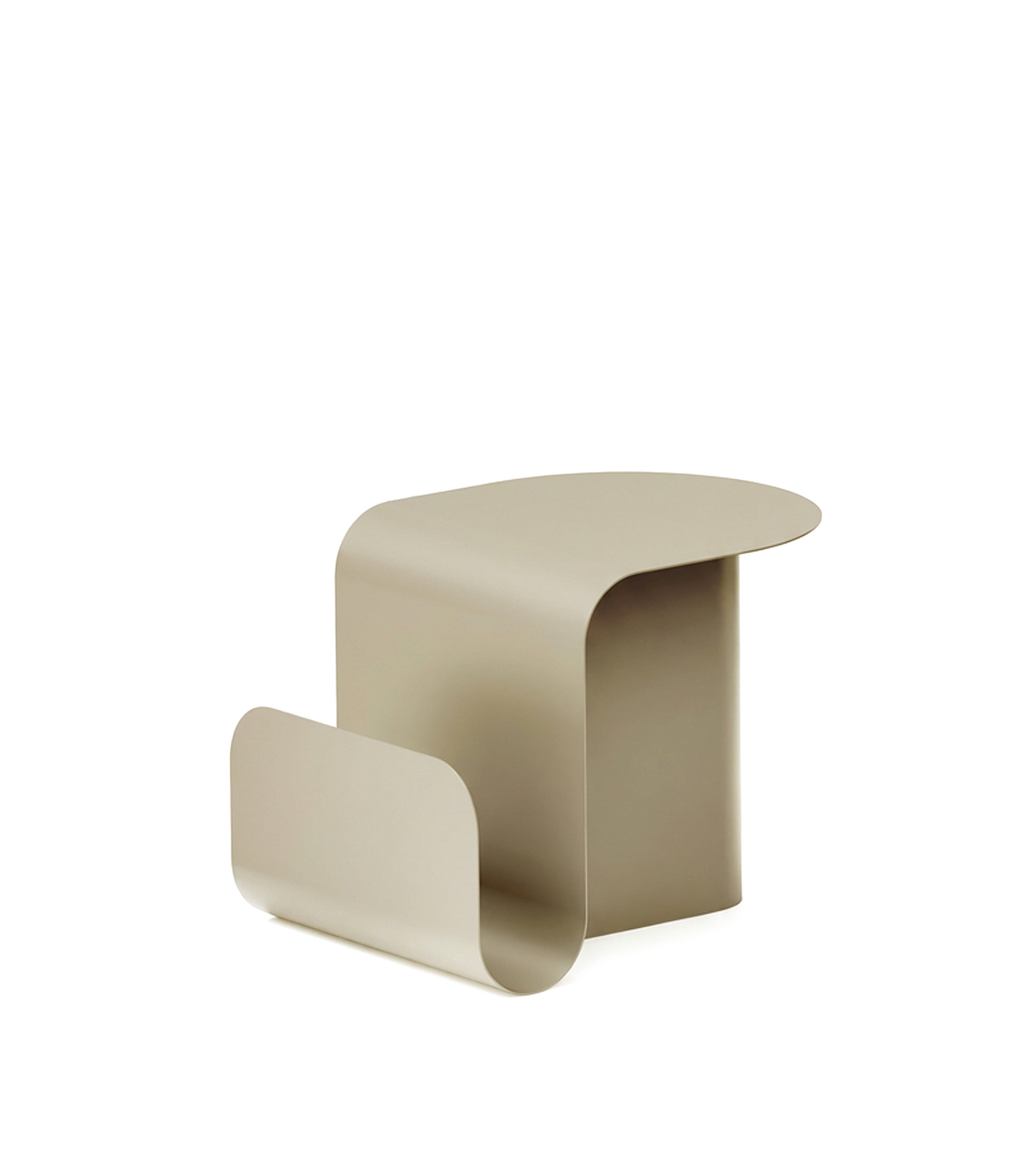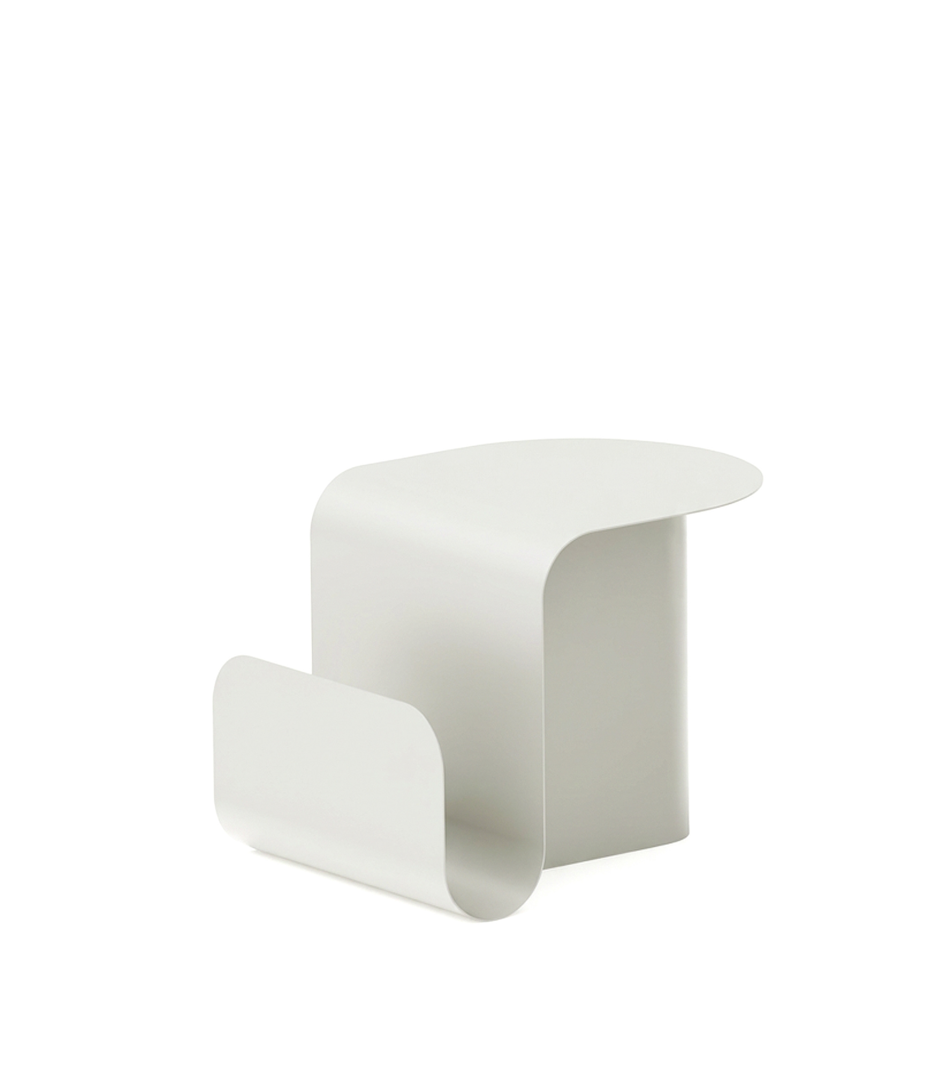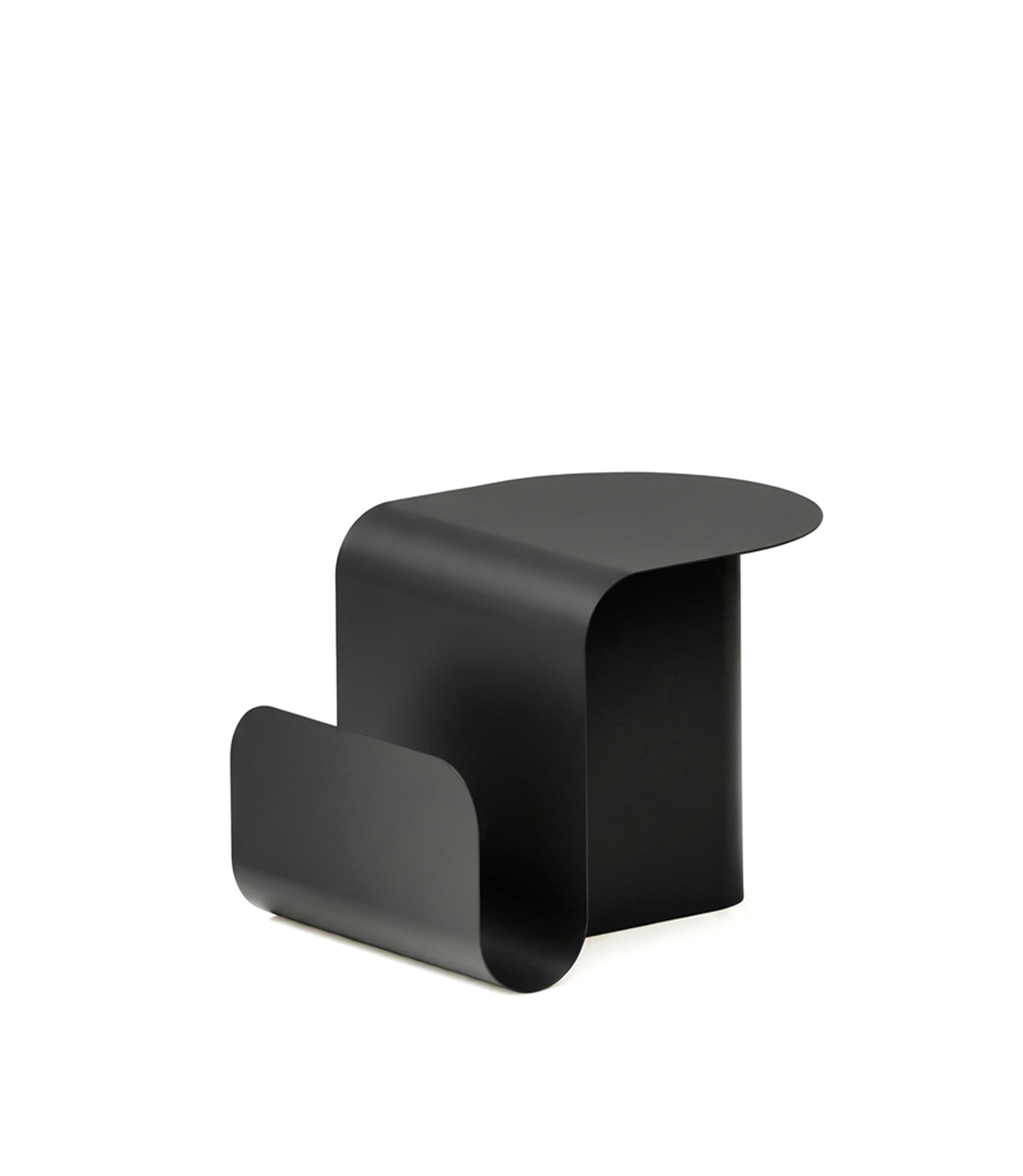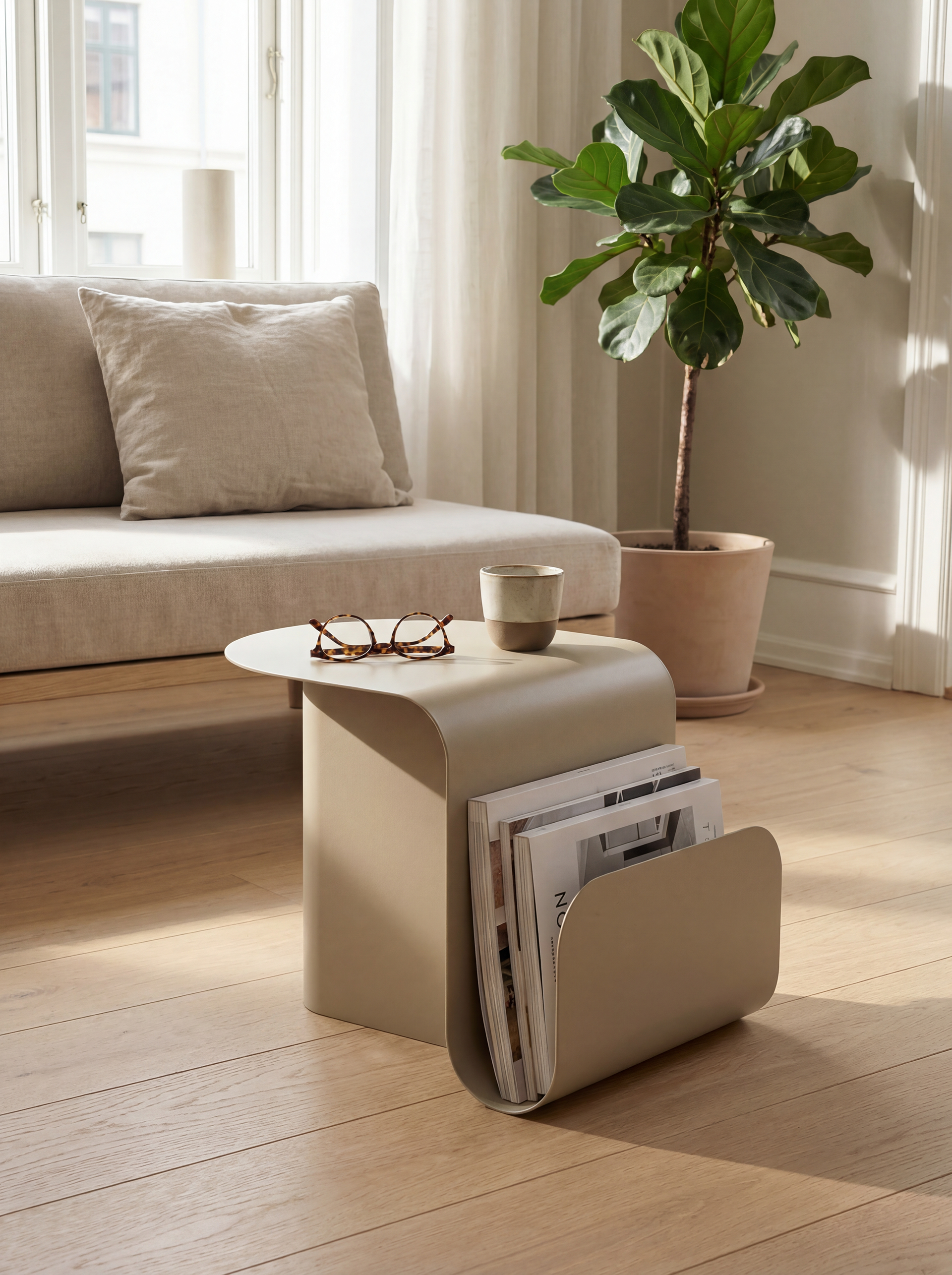 Crafted from gracefully bent, powder-coated steel, YOMU balances sculptural elegance with everyday function. Its slim profile slides easily beside a sofa or armchair, while the built-in magazine holder adds a thoughtful layer of organization. The durable powder-coat finish gives it a refined, matte look that’s made to last.